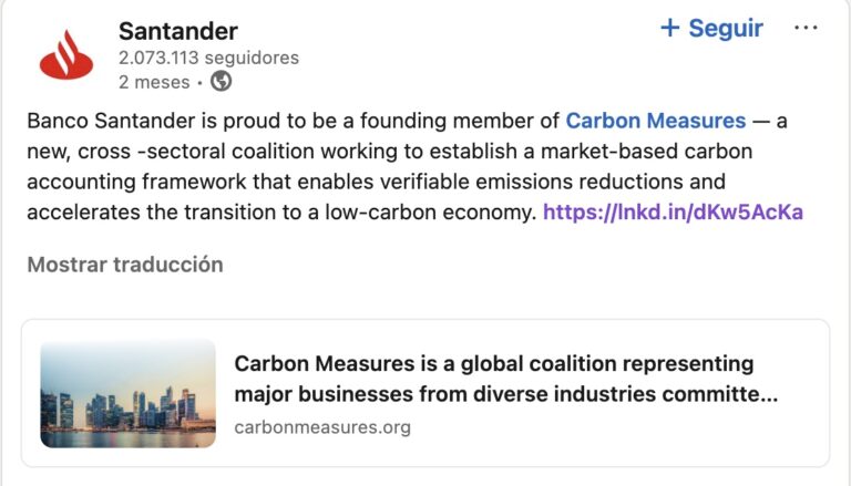 Banco Santander y Carbon Measures: el debate sobre la contabilidad del carbono y la responsabilidad climática